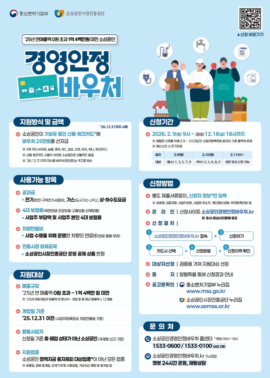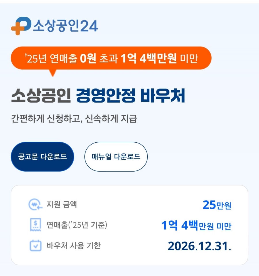 소상공인 경영안정 바우처 형태로 제공되는 만큼, 대상 여부를 빠르게 확인하고 신청 절차를 진행하는 것이 중요합니다.
