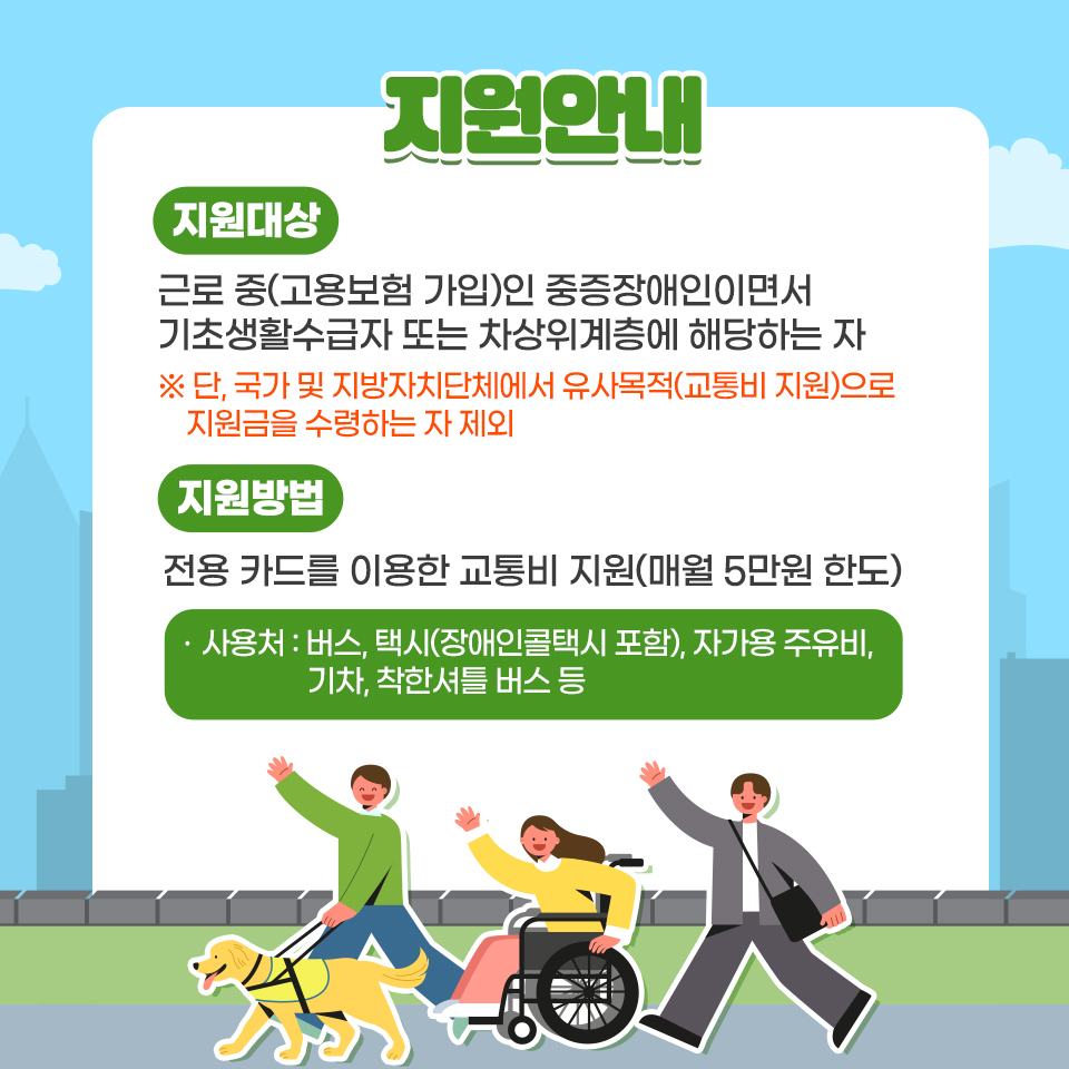 지원방법 : 전용 카드를 이용한 교통비 지원(매월 5만원 한도)